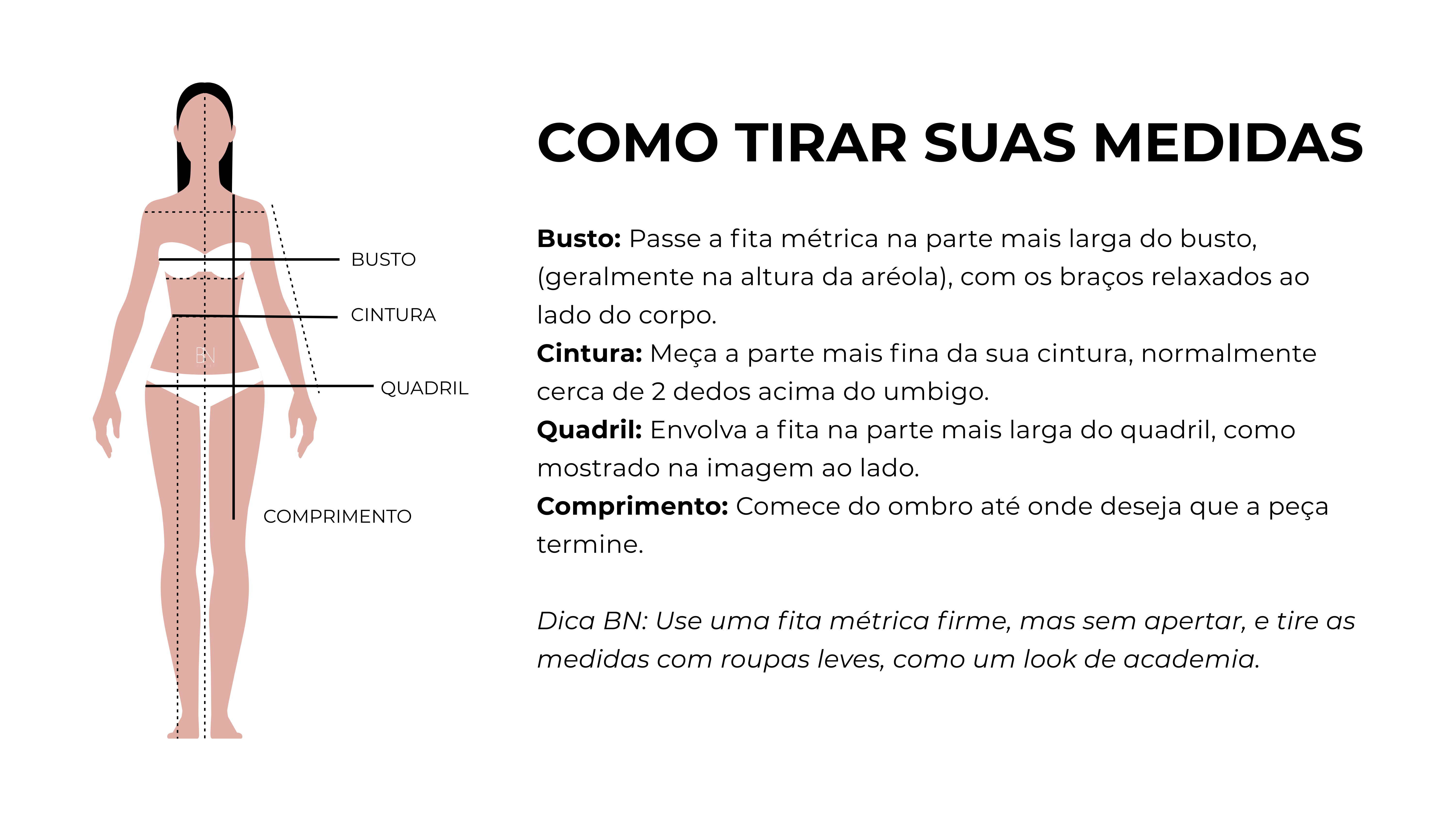 Tamanhos sugeridos: Se você usa 36/38, sugerimos o tamanho P. Se você usa 38/40, sugerimos o tamanho M. Se você usa 42/44, sugerimos o tamanho G.